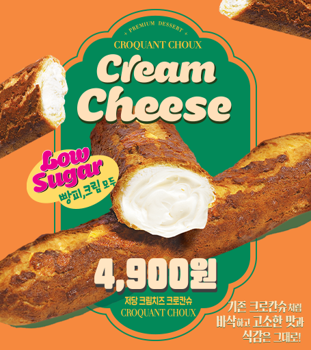 바삭하고 고소한 크로칸의 식감과 크림치즈의 달콤하고 부드러운 풍미는 그대로 살리고, 당 함량은 10배 가량 낮춘 저당 크로칸슈