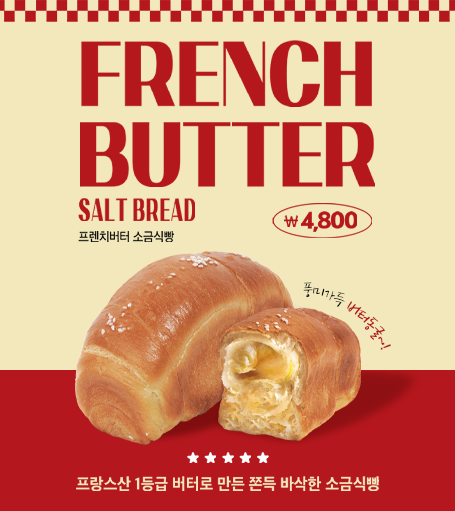 쫀득한 반죽에 프랑스 버터의 깊은 풍미가 더해진 리얼 프리미엄 소금빵