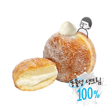 우유의 깊고 진한 맛이 일품인 순수우유 크림이 듬뿍 들어있는 폭신한 수제 도넛