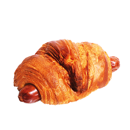 결이 살아있는 크루아상에 육즙 가득한 소시지가 들어가 더욱 풍미 가득한 맛의 식사 대용 크루아상